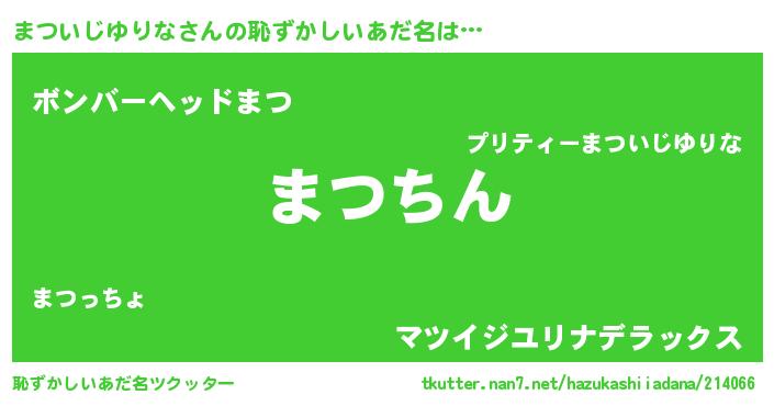 | 男性向けラノベタイトル風あだ名 | 『転生したらまついじゆりなだった件』 |