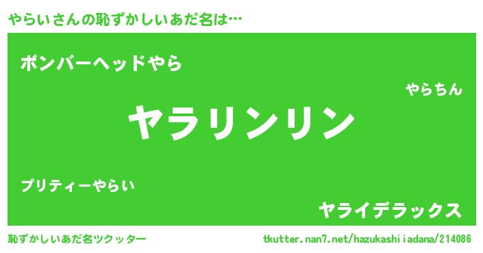 | ヘコむあだ名 | 『やらを』『やらい(笑)』『酢こんぶ』 |