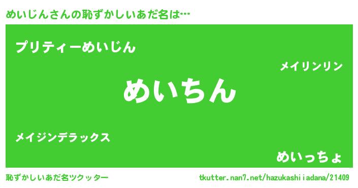 | ヘコむあだ名 | 『めいじん(小並感)』『めいふぇ~』 |