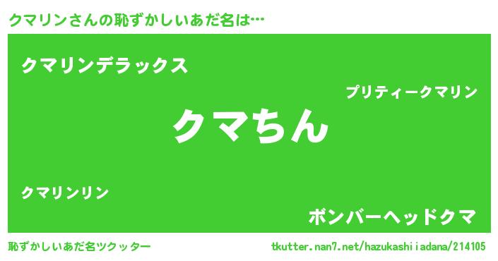 | 意味不明あだ名 | 『永久保存クマリン』『自称クマリン』 |