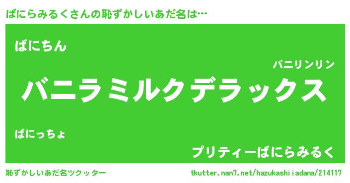 | ヘコむあだ名 | 『ばにらみるく(小並感)』『ばにっふぃ~』 |