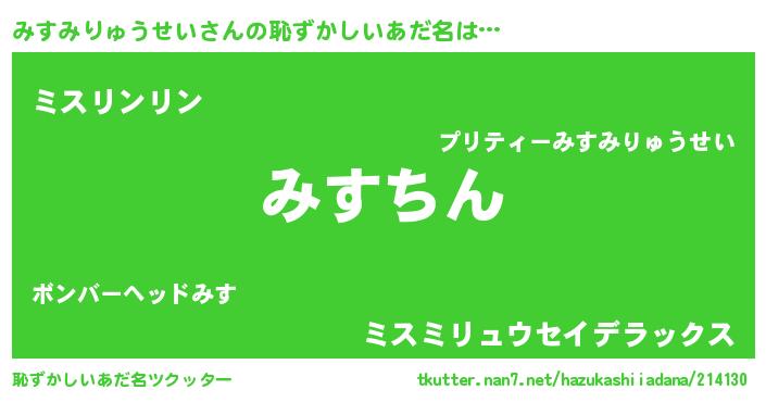 | ヘコむあだ名 | 『みすみりゅうせい(笑)』『みす太郎』 |