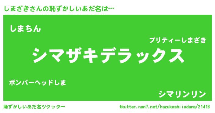 | 意味不明あだ名 | 『自称しまざき』『永久保存しまざき』 |