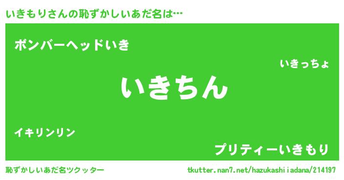 | 意味不明あだ名 | 『住所不定無職いきもり(56歳)』 |
