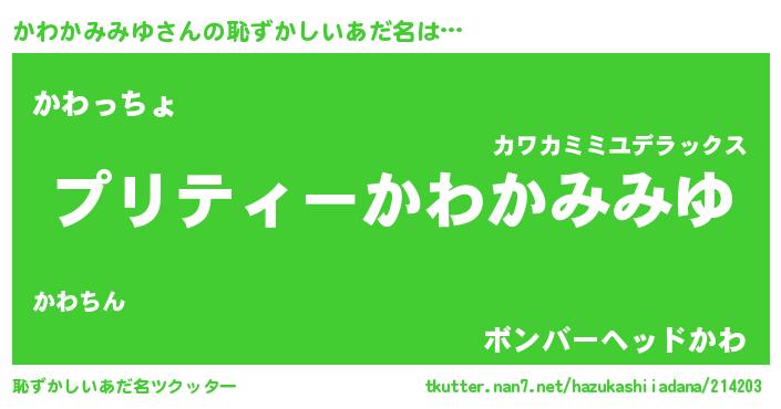 | 男性向けラノベタイトル風あだ名 | 『この素晴らしい世界にかわかみみゆを!』 |