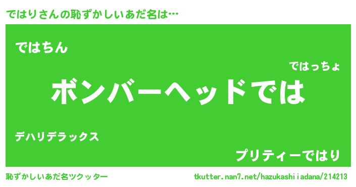 | ヘコむあだ名 | 『ではり(笑)』『ではふぇ~』 |