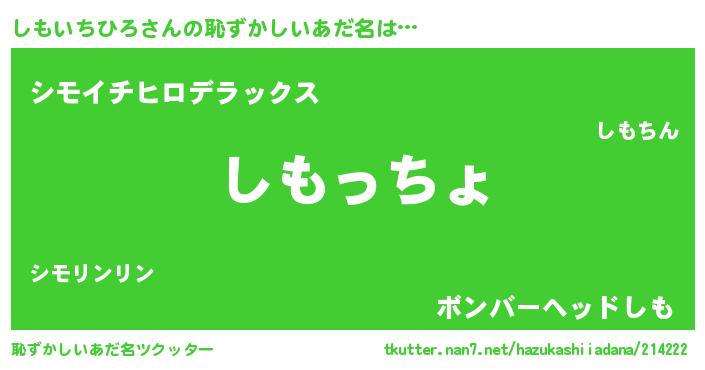 | 意味不明あだ名 | 『しもいちひろフォーエバー』 |