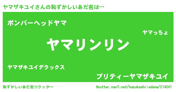 | 欧米人風あだ名 | 『ウサインヤマザキユイ』 |