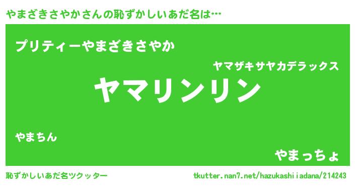 | ポケモン風あだ名 | 『ヒヤマザキサヤカ』『メロヤッマ』 |