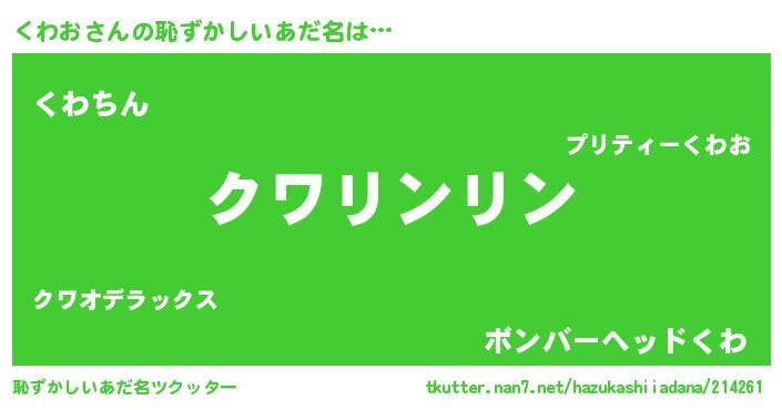 | 女子向けラノベタイトル風あだ名 | 『くわおは平凡を望む』 |
