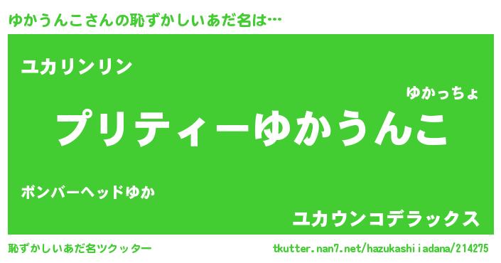 | ポケモン風あだ名 | 『ユカチュウ』『ヒユカウンコ』 |
