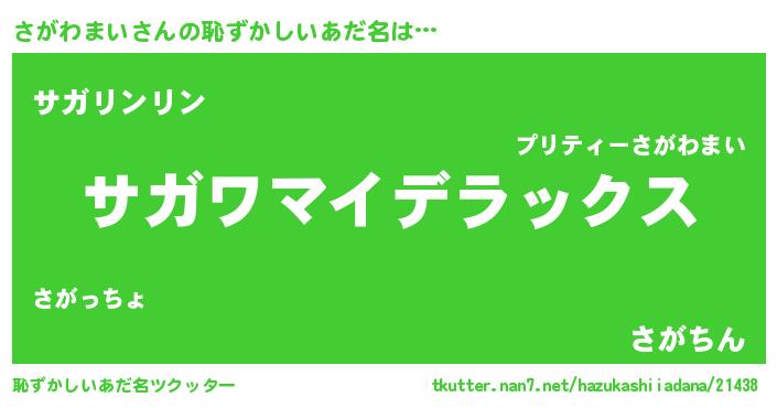 | 意味不明あだ名 | 『自称さがわまい』『永久保存さがわまい』 |