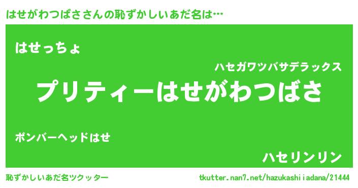 | ポケモン風あだ名 | 『ハセチュウ』『ハセガダネ』 |