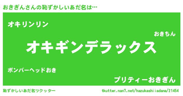 | 男性向けラノベタイトル風あだ名 | 『Re:おきぎんから始める異世界生活』 |