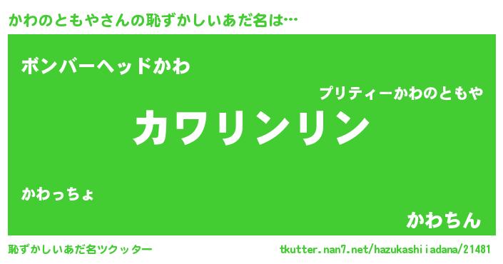 | 意味不明あだ名 | 『とにかく怪しいかわのともや』 |