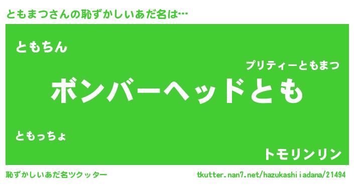 | ヘコむあだ名 | 『ともまつ(苦笑)』『ともっ子』 |