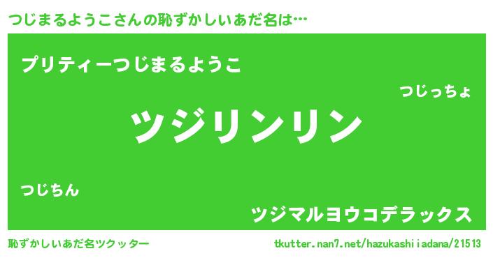 | 男性向けラノベタイトル風あだ名 | 『つじまるようこの嫁は女の子じゃないと思った?』 |