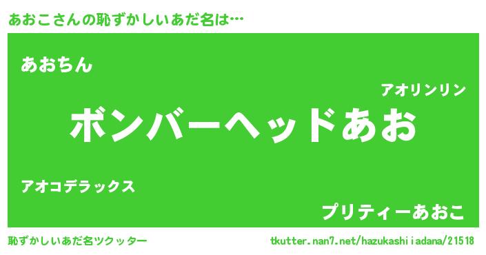 | ヘコむあだ名 | 『あおこ(爆)』『あおもー』『あおを』 |