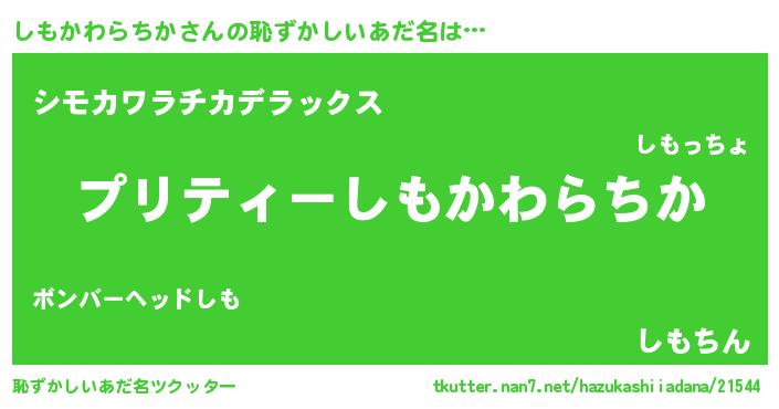| ヘコむあだ名 | 『しもふぇ~』『しもかわらちか(笑)』 |