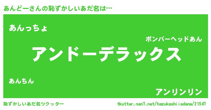 | 意味不明あだ名 | 『住所不定無職あんどー(1歳)』 |