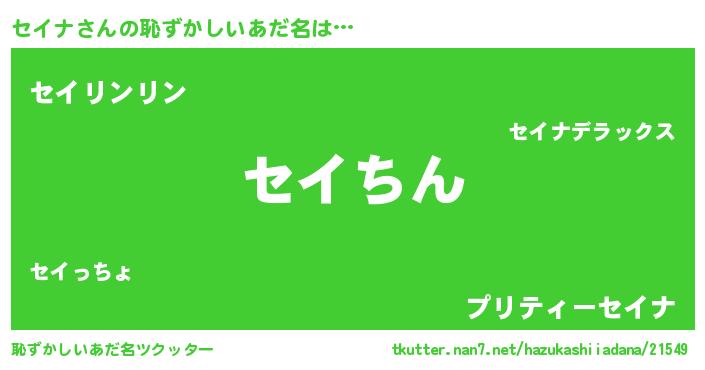 | 男性向けラノベタイトル風あだ名 | 『セイナという概念が存在しない退屈な世界 』 |
