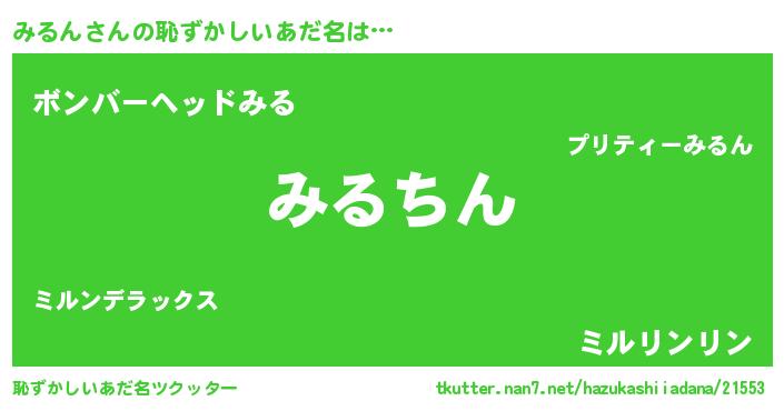 | ヘコむあだ名 | 『みるん(遠い目)』『みるっちょ』 |