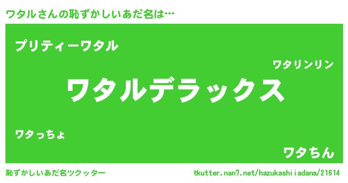 | ポケモン風あだ名 | 『ワータイ』『ワタゴンZ』 |