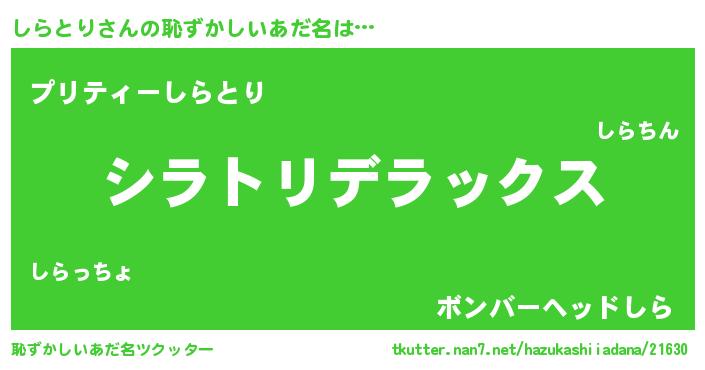 | ヒーロー風カッコイイあだ名 | 『仮面シラダー』『サイバー戦士シラトリ』 |
