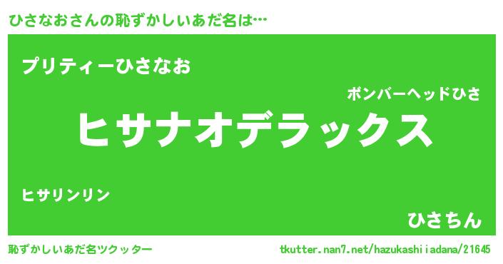 | ヒーロー風カッコイイあだ名 | 『最強戦士ヒサナオ』『スーパーヒサナオ』 |