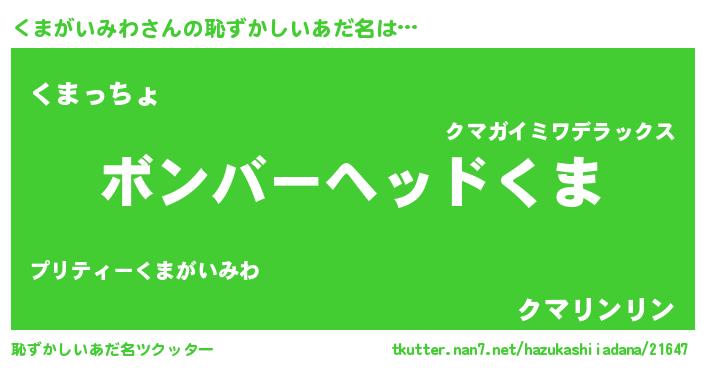 | 男性向けラノベタイトル風あだ名 | 『ノーゲーム・ノークマガイミワ』 |