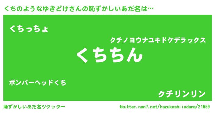 | 男性向けラノベタイトル風あだ名 | 『くちのようなゆきどけという概念が存在しない退屈な世界 』 |