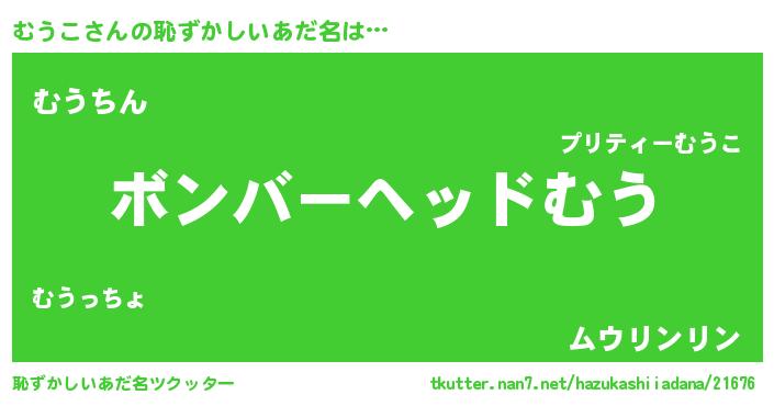 | 男性向けラノベタイトル風あだ名 | 『ムウコスレイヤー』『むうこの憂鬱』 |