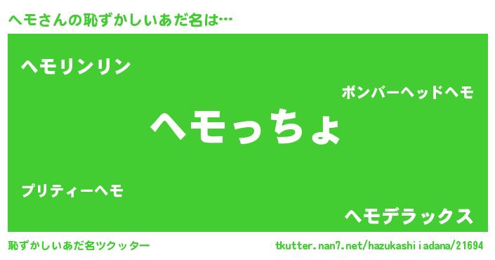 | ポケモン風あだ名 | 『ヘモダネ』『メロヘッモ』『ヒヘモ』 |