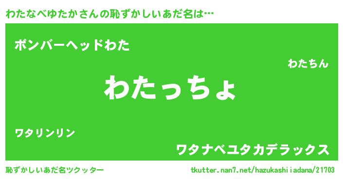 | ヒーロー風カッコイイあだ名 | 『仮面ワタダー』『ネオワタナベユタカ』 |