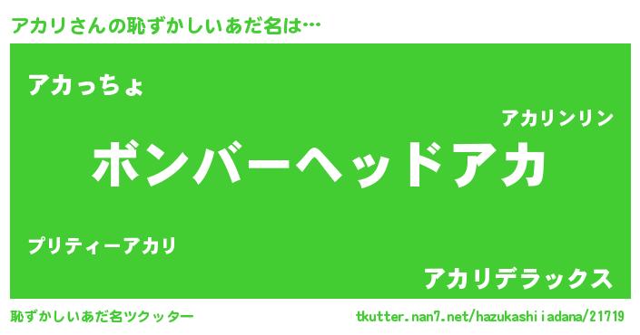 | 意味不明あだ名 | 『住所不定無職アカリ(3歳)』『自称アカリ』 |