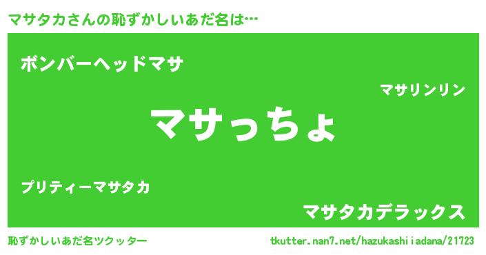 | 料理風あだ名 | 『マサタカごはん』『マサタカのトマト煮』 |