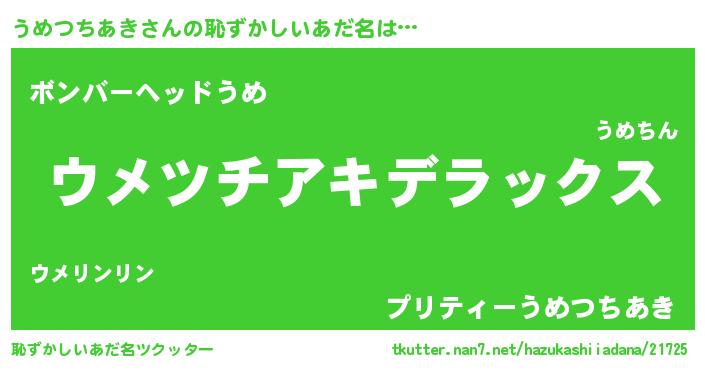 | 意味不明あだ名 | 『自称うめつちあき』 |