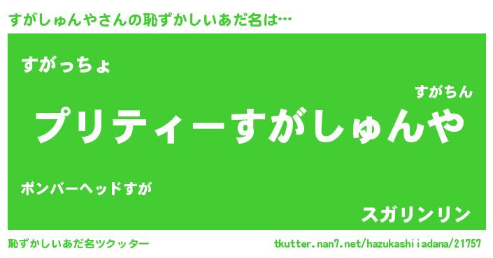| 意味不明あだ名 | 『住所不定無職すがしゅんや(11歳)』 |