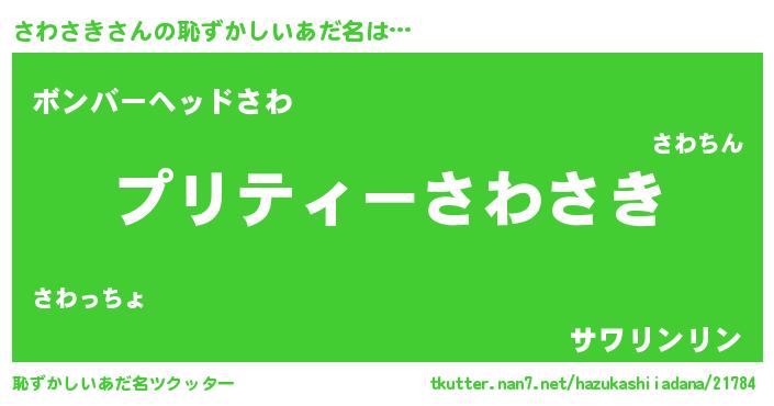 | 意味不明あだ名 | 『ペロリンさわさき』『永久保存さわさき』 |