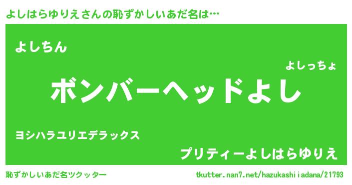 | ヘコむあだ名 | 『よしはらゆりえ(笑)』『よしもー』 |