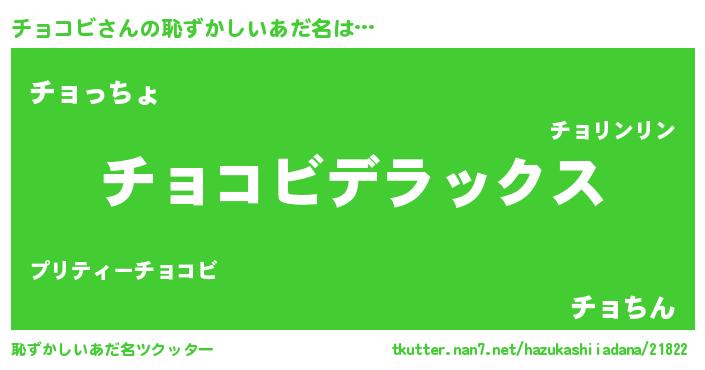 | 意味不明あだ名 | 『自称チョコビ』『チョコビフォーエバー』 |