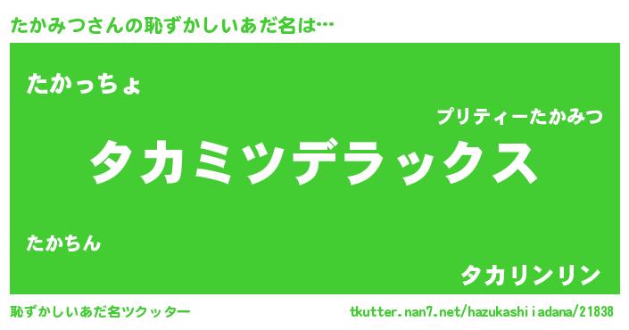 | 意味不明あだ名 | 『自称たかみつ』『たかみつフォーエバー』 |