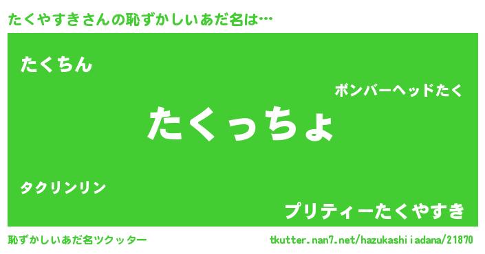 | 男性向けラノベタイトル風あだ名 | 『タクヤスキスレイヤー』 |