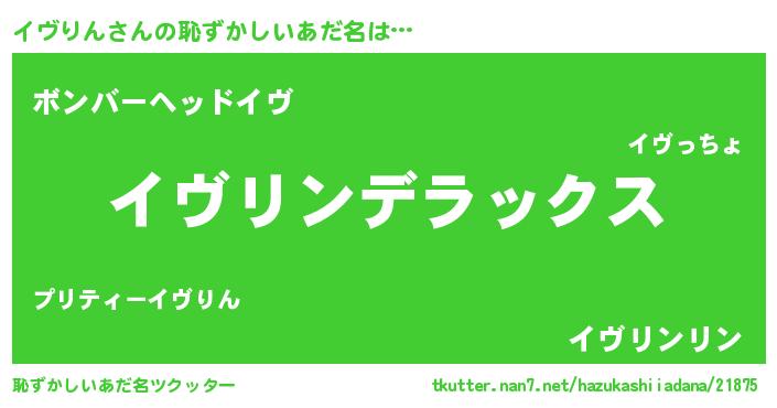 | ヒーロー風カッコイイあだ名 | 『仮面イヴダー』『最強戦士イヴリン』 |