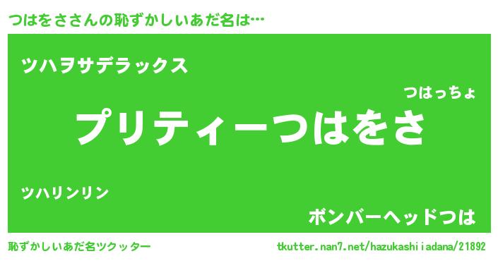 | ヒーロー風カッコイイあだ名 | 『スーパーツハヲサ』『最強戦士ツハヲサ』 |
