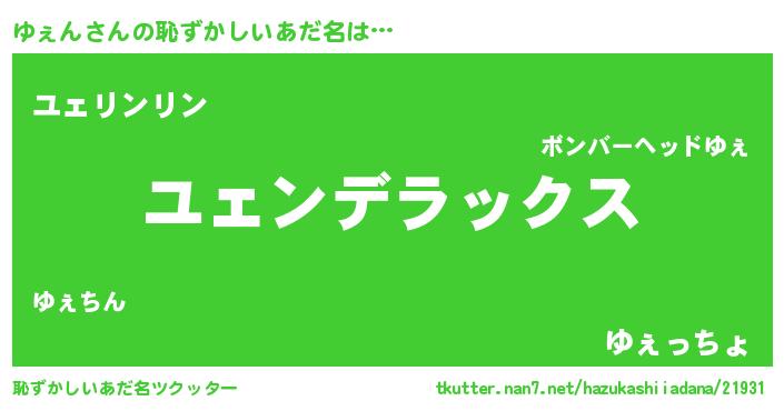 | 女子向けラノベタイトル風あだ名 | 『闇のゆぇん』『ゆぇんは平凡を望む』 |