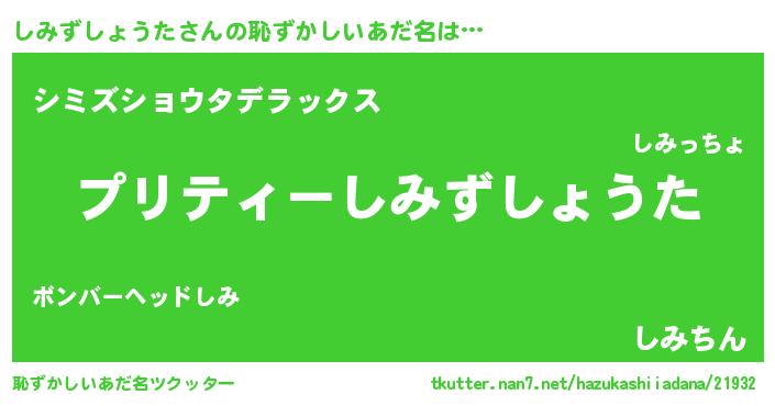 | ヘコむあだ名 | 『しみにゅー』『しみずしょうた(小並感)』 |