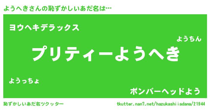 | ヘコむあだ名 | 『ようにー』『ようへき(震え声)』 |
