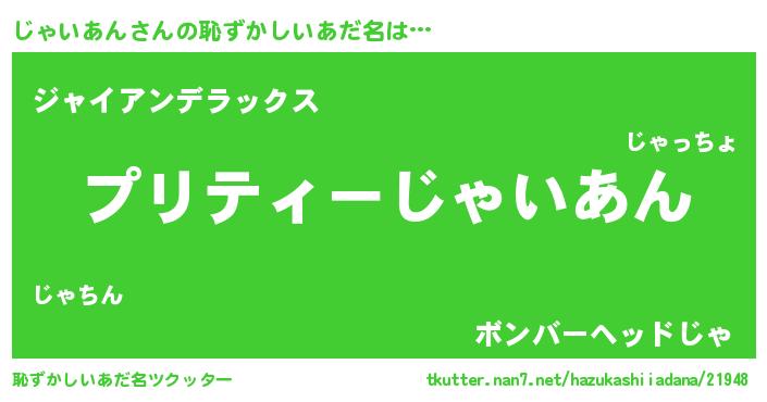 | 料理風あだ名 | 『じゃいあんのカルパッチョ風』 |