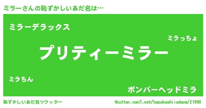 | ヘコむあだ名 | 『ミラにー』『酢こんぶ』『ミラっぺ』 |